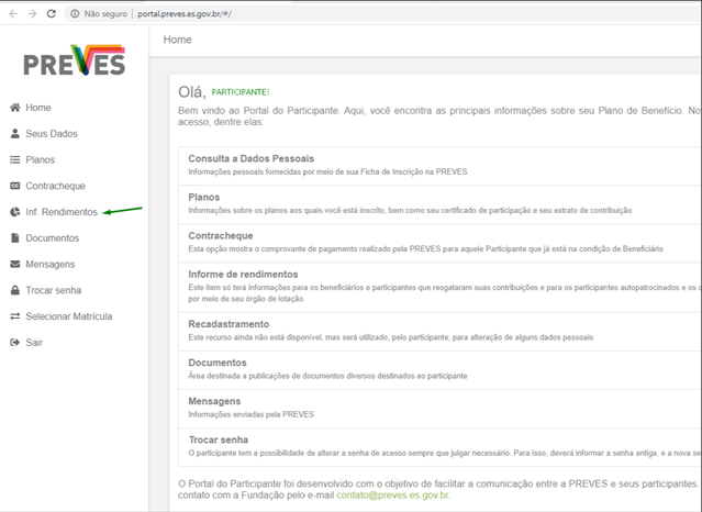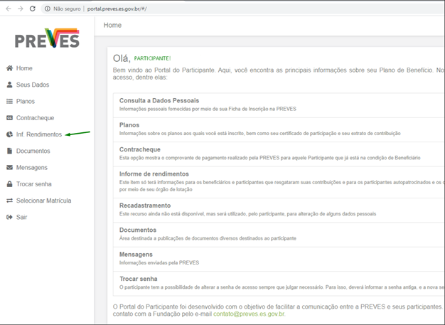 Nos casos de recebimento de rendimentos (benefícios ou resgate de contribuições), o informe de rendimentos para lançamento das parcelas recebidas no programa do Imposto de Renda 2025 é disponibilizado pela PREVES a partir do dia 1º de março. Esse informe de rendimentos fica na área restrita do participante. O acesso é muito simples e está demonstrado nas imagens abaixo: