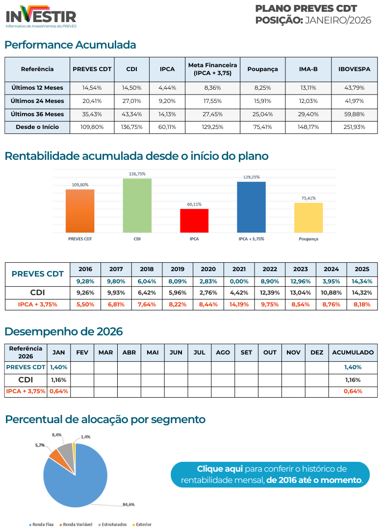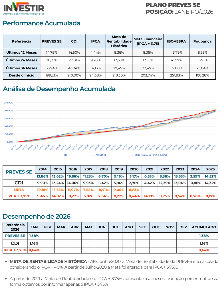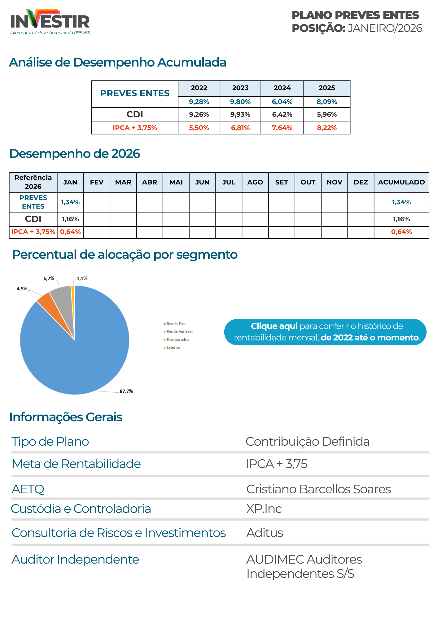 Página Principal Área do Participante Eleições Conselhos PREVES Eleições Conselhos PREVES 2025 Sistema de Votação Processo Seletivo Para Diretor de Investimentos Institucional Quem Somos Conselho Deliberativo Conselho Fiscal Diretoria Executiva Ouvidoria Concursos Organograma Estatuto da PREVES Gestão de documentos Área do Conselho Patrocinadores Planos PREVES SE PREVES CDT PREVES ENTES Requerimentos Investimento Comitê de Investimentos Política de Investimentos Investir | Demonstrativo de Investimentos Mensal Fundos Exclusivos de Investimentos Processo de Seleção de Gestor de Investimentos Contato Central de atendimento Atendimento ao Participante Localização Proteção de Dados Transparência Balancetes Mensais Balancetes 2025 Balancetes 2024 Balancetes 2023 Balancetes 2022 Balancetes 2021 Contratos Despesas Demonstrativos Anuais Demonstrativos de Investimentos Diárias Licitações Inexigibilidade de Licitação Inexigibilidade de Licitação 2026 Inexigibilidade de Licitação 2025 Inexigibilidade de Licitação 2024 Dispensa de Licitação Dispensa de Licitação 2026 Dispensa de Licitação 2025 Dispensa de Licitação 2024 Pregão Eletrônico Pregão Eletrônico 2025 Orçamento Anual Pessoal Relatório Anual de Informações Relatório Administrativo Relatório Semestral do Conselho Fiscal Resoluções Receitas Regulamento do PGA
